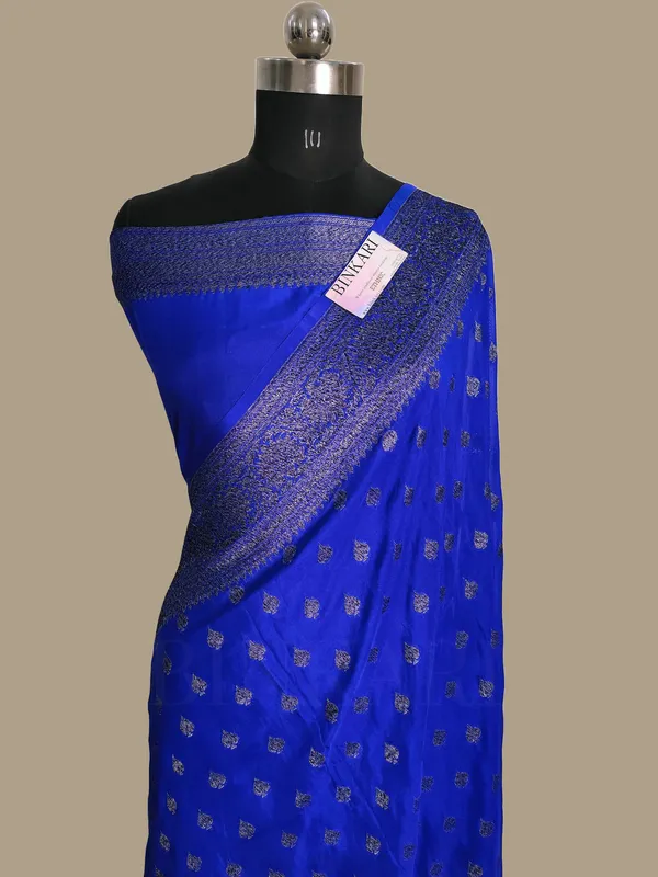 Faux Georgette Buti Banarasi Saree Faux Grey Zari With Blouse/ Royal Blue