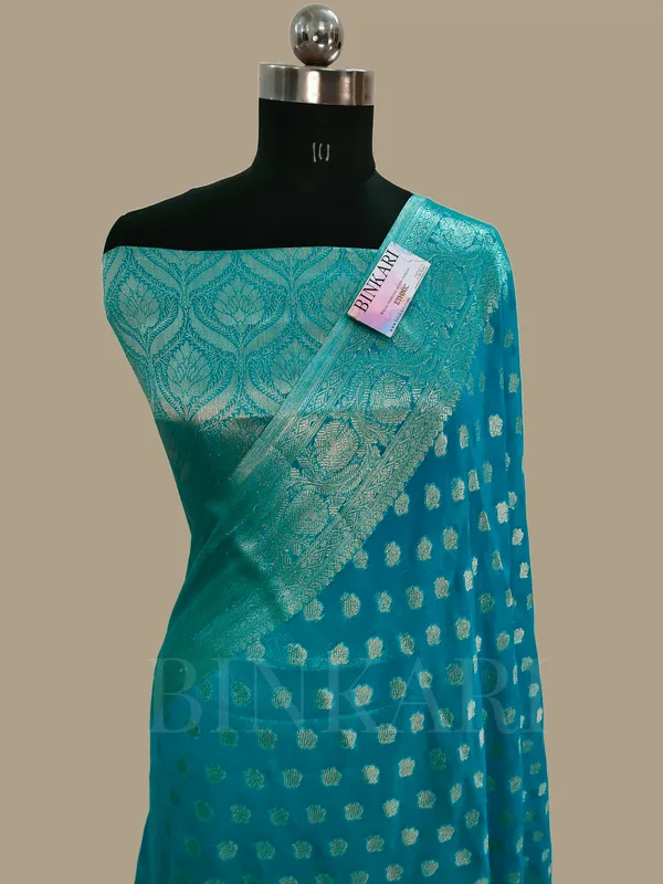 Faux Katans Blend Banarasi Saree With Blouse Faux Water Gold Zari/ Sky Blue