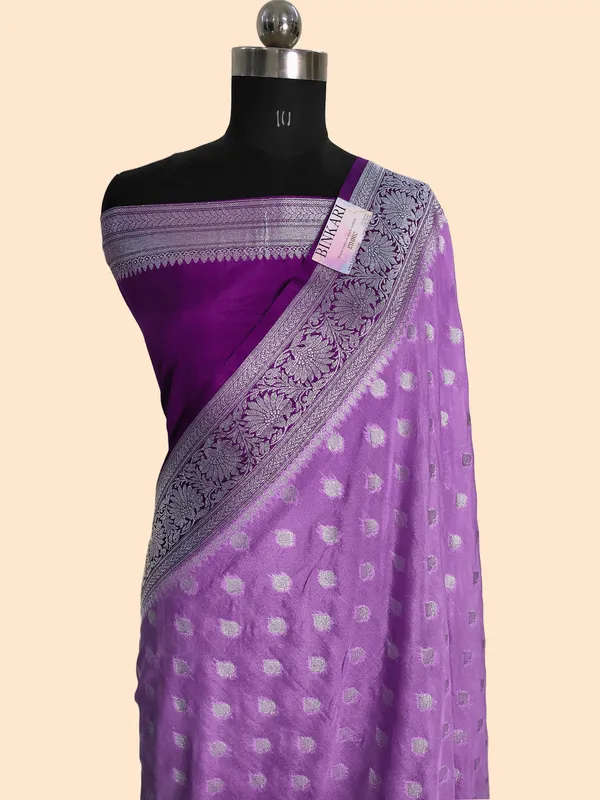 Faux Katans Georgette Contrast-Dye Buti Banarasi Saree/ Pastel Violet